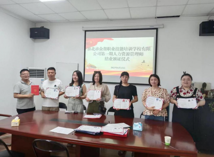 2023年6月13日,勞代公司淮北市眾幫職業技能培訓學校為第一期38名學員頒發了企業人力資源管理師證書,通過率達99%。我校利用周末時間以線上+線下結合的教學模式開展企業人力資源管理師培訓,培訓教師通過舉實例、現場提問、模擬現實場景的方法,宣講了從事企業人力資源管理工作的方法和經驗,進一步提升了培訓學員的工作能力,規范了學員在從事企業人力資源管理工作中的操作方法和工作流程。形成“培訓—技能提高—企業發展—再培訓”的發展模式,讓學員真正做到學以致用。