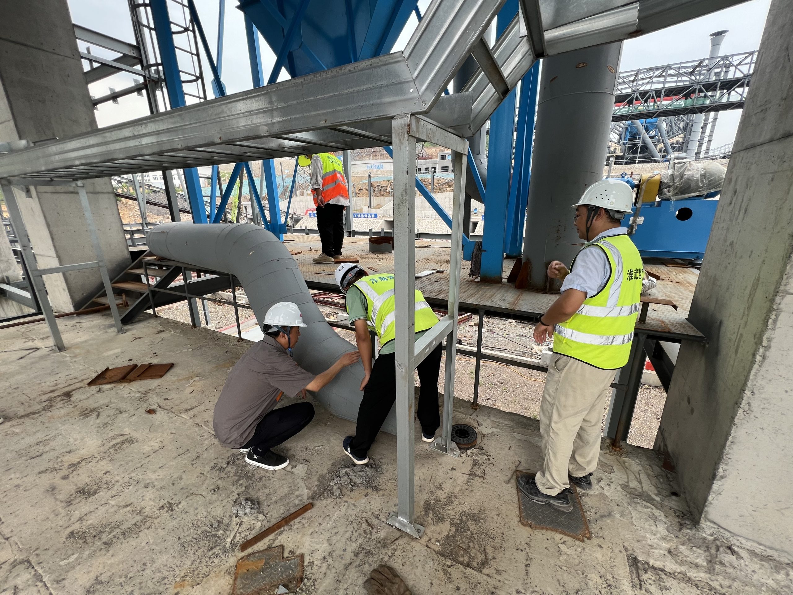 劉鵬總經(jīng)理一行先后對(duì)儲(chǔ)存發(fā)運(yùn)B區(qū)鋼結(jié)構(gòu)、儲(chǔ)存發(fā)運(yùn)A區(qū)至B區(qū)廊道、三篩至儲(chǔ)存發(fā)運(yùn)區(qū)鋼結(jié)構(gòu)等區(qū)域的安全生產(chǎn)管理、現(xiàn)場(chǎng)施工作業(yè)、已完工工程安全質(zhì)量等方面進(jìn)行了仔細(xì)查看和詳細(xì)了解,并與現(xiàn)場(chǎng)管理人員進(jìn)行深入交流。