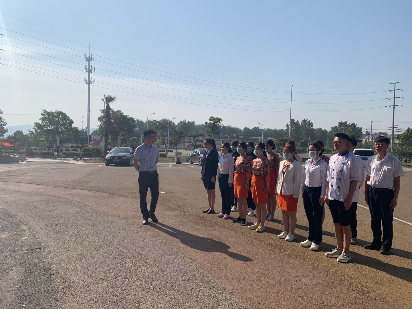 2020年6月8日上午8時許,淮北市南湖酒店運營管理有限公司黨支部在酒店停車場進行了“增強精神面貌、提升服務(wù)質(zhì)量”為主題的軍事化訓(xùn)練。