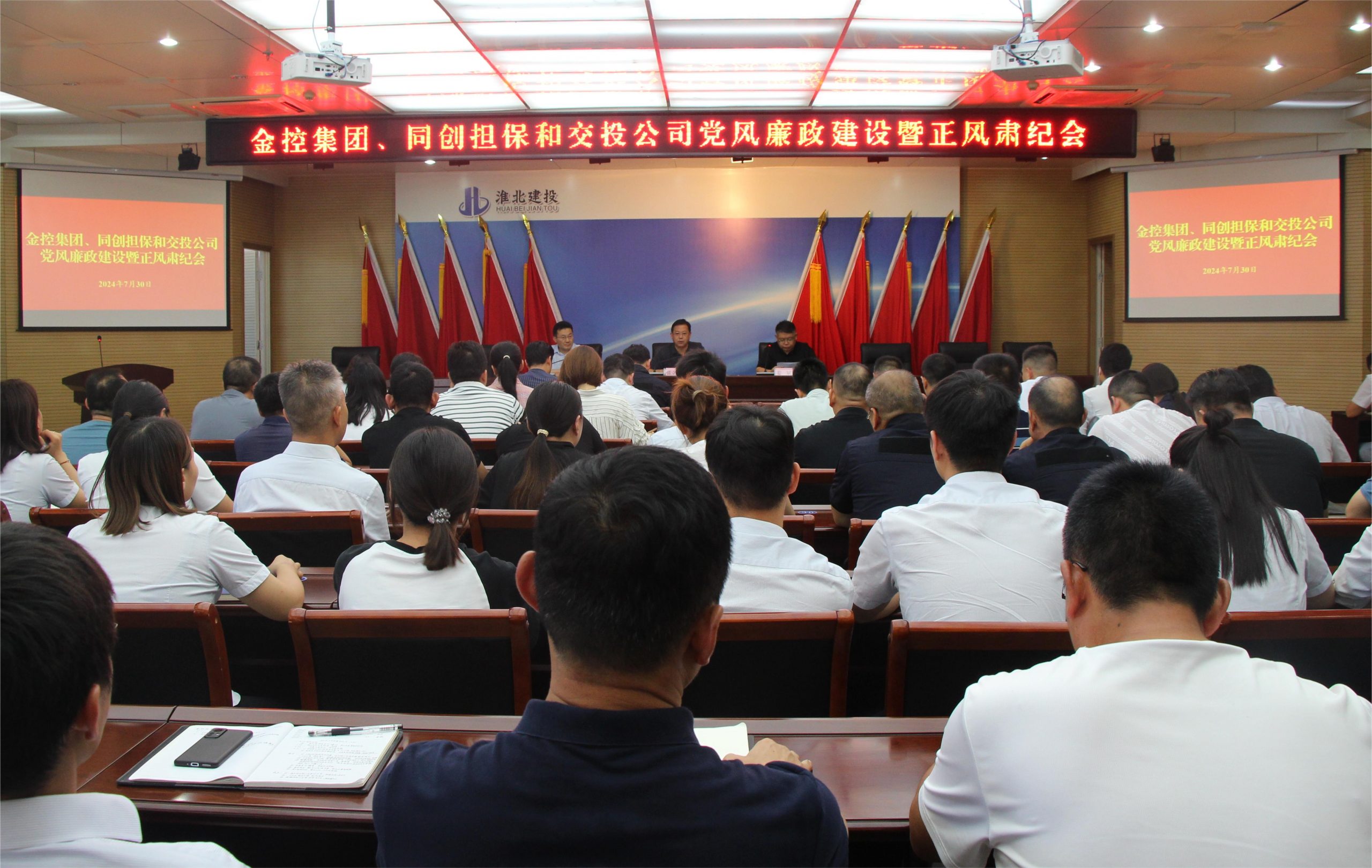 7月30日下午,金控集團、同創擔保和交投公司在集團公司二樓會議室召開黨風廉政建設暨正風肅紀會。集團黨委委員、副總經理張立哲主持會議,集團黨委委員、紀委書記、監察專員姜斌、集團公司總經理助理朱濤出席會議并講話。金控集團、同創擔保及交投公司中層以上管理人員及黨員骨干、紀檢監察部相關人員參加會議。