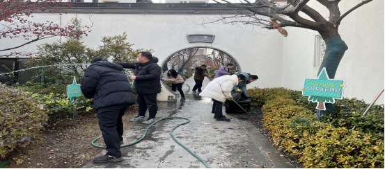 盡管天氣寒冷,但大家的熱情絲毫未減。經(jīng)過一下午努力,桃花源景觀展示區(qū)面貌煥然一新呈現(xiàn)出更加整潔、美麗的面貌。