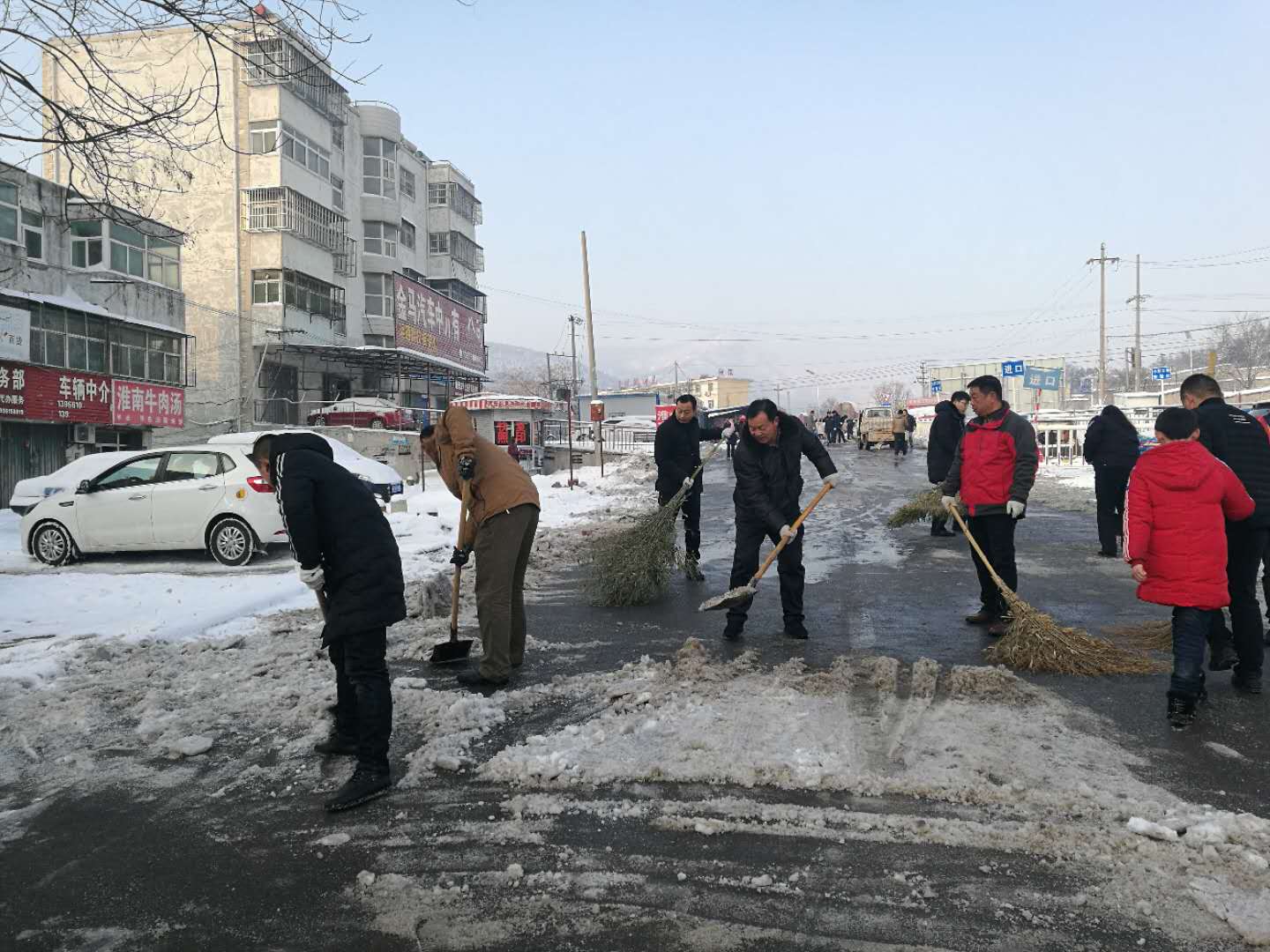 盡管天氣嚴寒,大雪紛飛,但大家個個奮勇當先,熱情不減,在副總經(jīng)理吳冰、陳維佳帶領下,同志們手拿鐵鍬、掃帚等工具,團結協(xié)作奮戰(zhàn),有的掃雪、有的鏟冰、有的清運。經(jīng)過二個小時的努力,單位門口及院內(nèi)積雪凍冰就清理一空,為前來辦理業(yè)務的車主營造了安全暢通的服務環(huán)境。