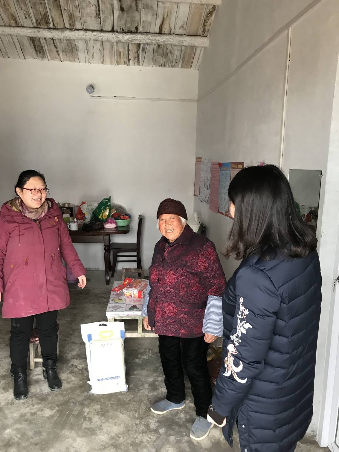 扶貧小組為老人送上米、面、油等春節慰問品,并與老人進行了親切交談,給老人講解扶貧政策,鼓勵老人樹立脫貧信心、保重好身體,為老人帶來冬日里的一絲溫暖,讓老人感受到扶貧小組的關懷,讓貧困家庭過上一個歡樂祥和的新春佳節。